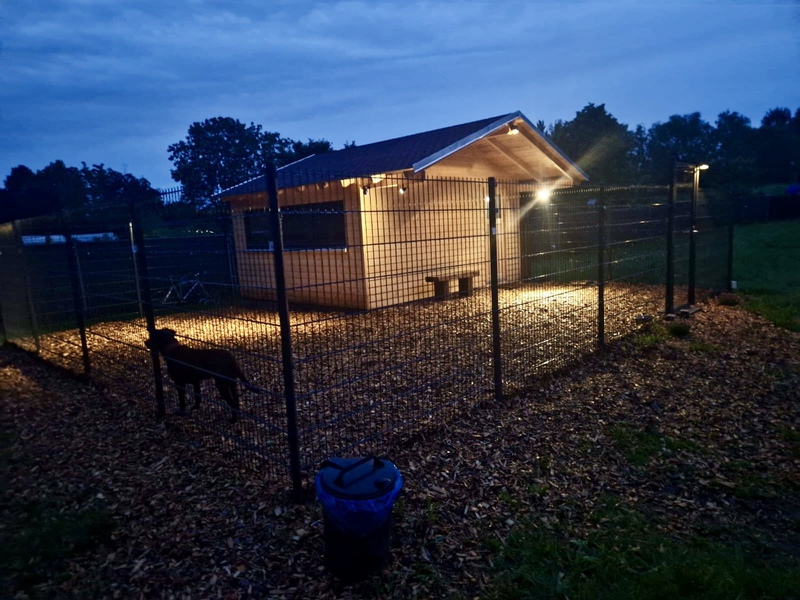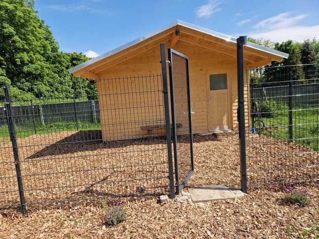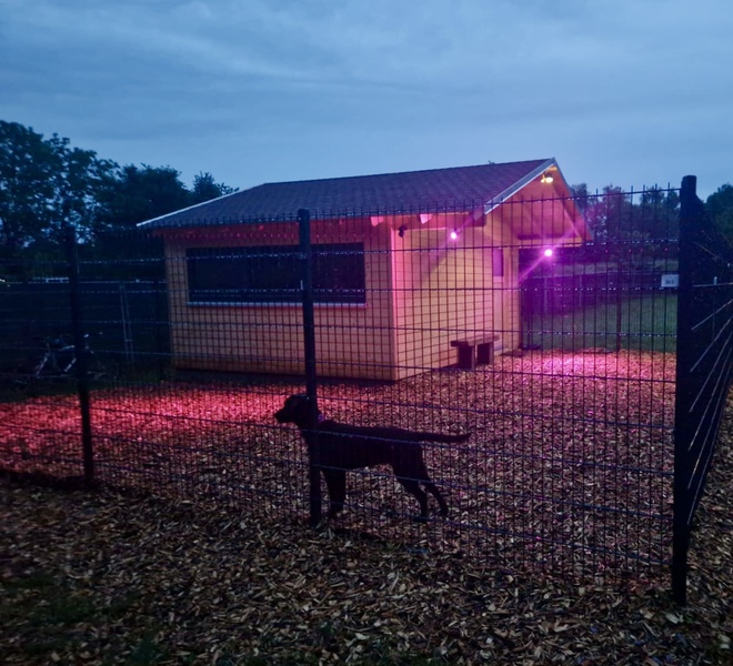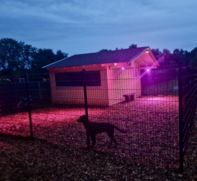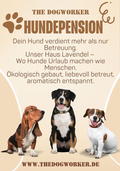 Unsere Gäste wohnen im gemütlichen Hundehaus „Lavendel“, das speziell für Ruhe und Entspannung konzipiert wurde. Hier genießen die Hunde täglich wohltuende Aroma- und Farblichttherapie, die das allgemeine Wohlbefinden fördern und Stress abbauen. Der großzügige Außenbereich lädt zum Toben und Schnuppern ein und ist – je nach Wetterlage und Tageszeit – frei zugänglich.