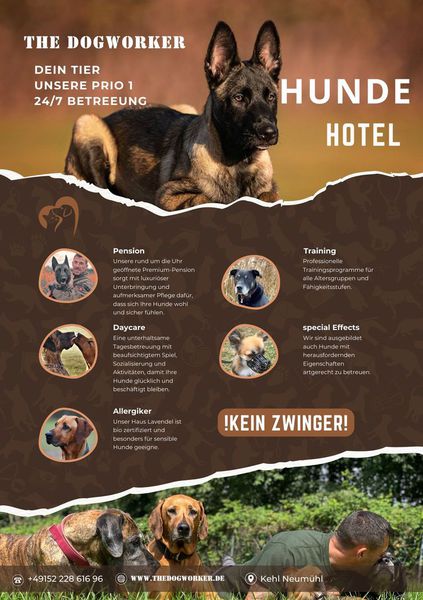 Unsere Hundepension ist 24 Stunden am Tag besetzt, sodass Ihr Hund jederzeit gut aufgehoben ist. Neben der klassischen Urlaubsbetreuung bieten wir auch eine Tagesbetreuung an – ideal für Berufstätige oder als liebevolle Alternative zur Hundetagesstätte. Ihr Hund verbringt den Tag bei uns in Gesellschaft, wird beschäftigt und umsorgt, während Sie sich auf Ihre Aufgaben konzentrieren können.