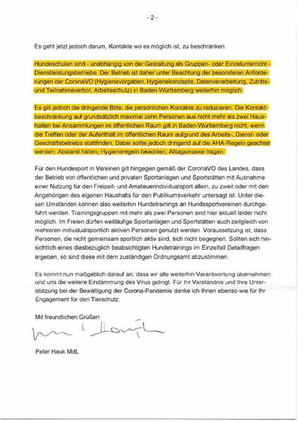 Der Betrieb von Hundeschulen wird in den FAQ´s zur Corona Verordnung des Landes Baden Württemberg explizit erwähnt: